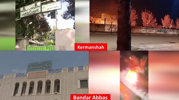 Darüber hinaus wurden Symbole des Spionagehauptquartiers des Geheimdienstministeriums in Hashtgerd, eine Statue von Khomeini in Buschehr, ein Qasem-Soleimani-Denkmal in Kerman sowie Werbetafeln, Schilder und Banner der Regierung mit den Bildern von Khomeini, Khamenei und Soleimani in Teheran, Täbris, Hamedan, Birjand, Neyshabur, Saravan, Karaj, Kermanshah, Sabzevar, Ilam und Lordegan in Brand gesteckt.